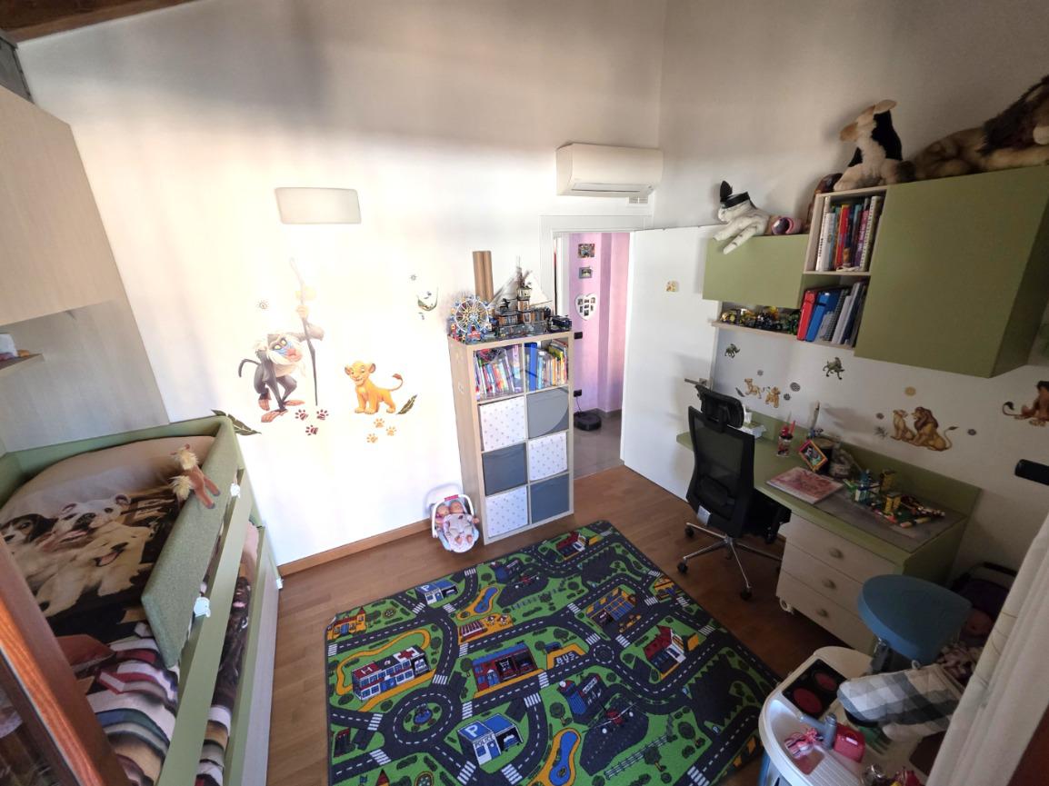 Un comodo corridoio separa la zona giorno dalla zona notte; qui troviamo i DOPPI SERVIZI finestrati ed attrezzati uno di doccia doppia mentre l’altro di vasca e le due camere da letto: matrimoniale con finestra ed ampia camera singola con accesso al suo balcone di pertinenza.