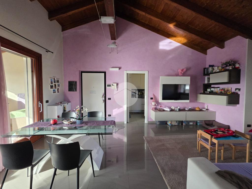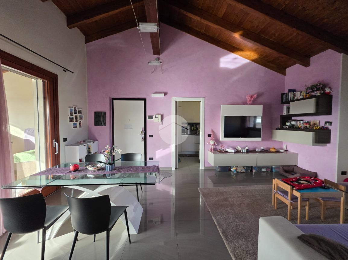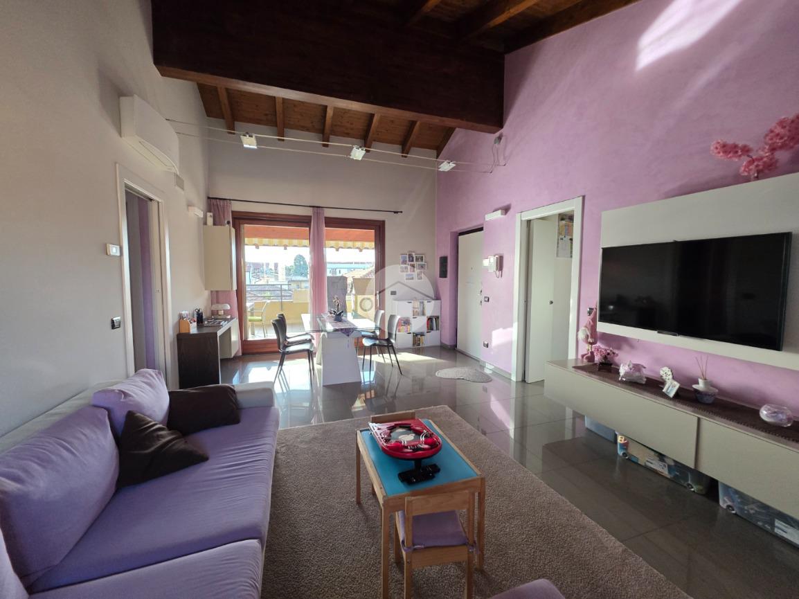 l’ingresso ci accoglie direttamente nel grande e luminoso soggiorno, da cui abbiamo accesso al TERRAZZO di 30 mq. esposto ad Ovest. Abbiamo inoltre una cucina abitabile con accesso ad un balcone esposto ad est ed una terza pertinenza, che vediamo in seguito. E’ presente un ripostiglio interno.