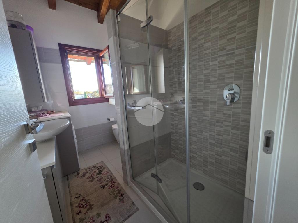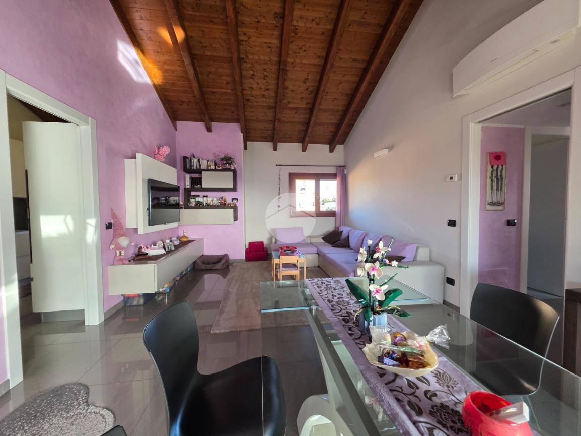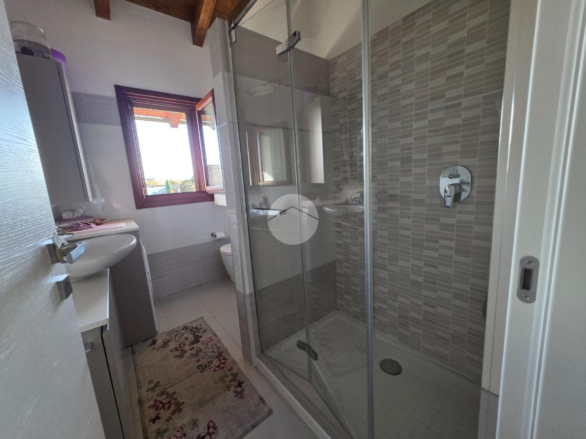 Per quanto attiene le finiture interne dell’abitazione, poniamo in evidenza le TRAVI A VISTA in tutti gli ambienti, i serramenti in legno con doppi vetri, la pavimentazione in ceramica e parquet per la zona notte, l’impianto di allarme, le zanzariere alle pertinenze, le tapparelle motorizzate così come le tende da sole sul terrazzo, il sistema di aria condizionata con 3 split.